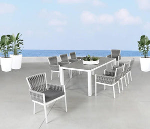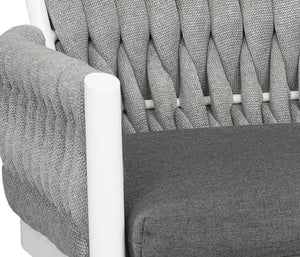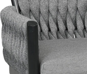 This visually captivating line is constructed from powder coated cast aluminum with woven Sol Rope, resulting in unique and eye-catching outdoor pieces. Includes Sunbrella® cushions that come in your choice of fabric. The Sunbrella® Cushions are overstuffed for comfort and support, and are designed to withstand sun damage, mold, mildew and stains.