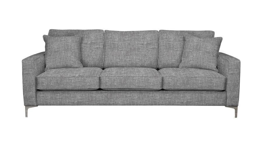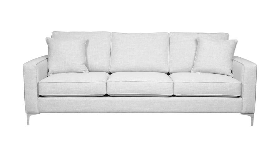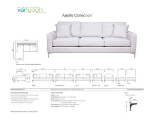 Available as a sofa, loveseat, chair, chair and a half, and sectional, the Apollo Collection pieces are made in Canada using only top quality materials, Van Gogh Designs' upholstered furniture is built to last. The Apollo's narrow arms and sleek legs are perfect for customers wanting to mege modern form and comfort. This style offers sleek metal legs that will dress up any space and cushions with excellent back support.