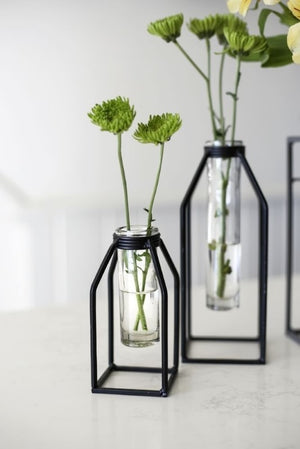 Show off tapered candles or a stem or two of fresh cut flowers in this stylish Black Iron Stand Vase! A unique vase for displaying holiday décor or spring blooms from the backyard.