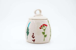 Hand-painted stoneware covered sugar dish featuring a lively wildflower pattern that brings a touch of nature to your table. 12cm tall, microwave and dishwasher safe for everyday ease.