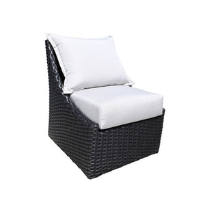 Crafted from a weather resistant Sol Weave® resin wicker on a powder coated aluminum frame, this chair includes overstuffed Canadian-made customizable Sunbrella® cushions that are available in a variety of colours and patterns. The cushions are designed to withstand sun damage, mold, mildew and stains.
