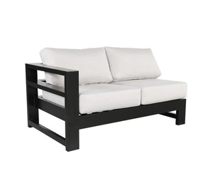 Great for patios and backyards, the Aura Left Module offers superior quality and visual appeal. A strong aluminum frame ensures durability, while requiring little to no maintenance. Pair with the corresponding modular pieces, for a full outdoor sectional. Fabric colours and patterns are customizable to your preferences. Sunbrella® fabric offers protection from stains, elements, mold and mildew. Available in Black or Dove finish, this piece comfortably seats two guests and can be paired with other modules for a sectional design.