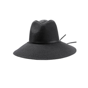Make a statement with this Black Extra Wide Straw Bucket Hat w/Chin Strap that offers a classic silhouette with a structured design. Featuring an interior sweatband with adjustable drawcord, this lightweight Canadian designed hat is crafted from 100% hand woven straw paper.