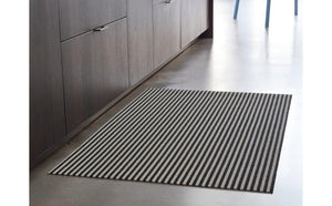 Long lasting, easy to clean, and suited for both indoors and out, this Chilewich Breton Stripe Shag Mat in Tuxedo is ideal for use in the entryway, kitchen, mudroom, patio, or pool area!