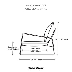 This low sling chair with an exposed bourbon coloured wood frame and thick plush cream cushions quietly shouts "relax!" Hip and stylish, this throwback design is comfortable and trendy all in one.