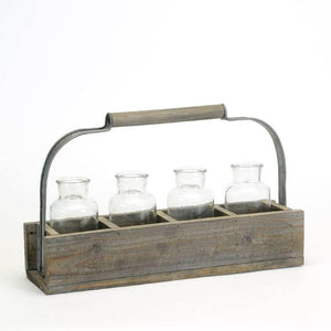 Display stems of freshly picked flowers with this beautiful cottage chic Handle Crate With Bottles