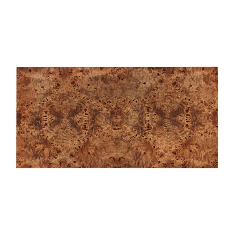 This coffee table features a flat top in Mappa Burl Veneer with smooth edges, providing ample space for serving drinks, displaying decor items.