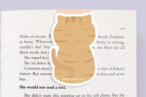 Cozy, curious, and full of feline charm! This Canadian-made magnetic bookmark features an orange tabby cat that hugs your page with gentle paws. Lightweight, durable, and purr-fect for cat lovers and bookworms alike.