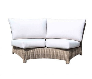 The Riverside Outdoor Curved Sofa features a relaxed, carefree and comfortable look and feel that is perfectly suited for backyards, patios or cottages. Available in Sol Weave® Drift Teak or Sol Weave® Espresso, it features an elevated back, comfortable armrests and deep seating.
