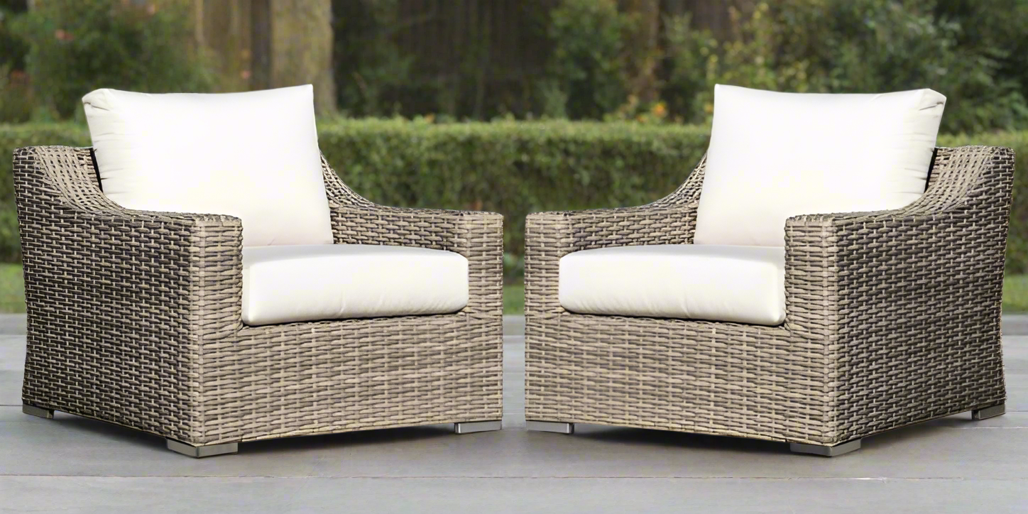 A great option for urban outdoor spaces, the Santorini Collection offers outdoor furniture that features clean lines and a compact construction. Great for entertaining and relaxing, the Santorini Outdoor Deep Seating Chair is constructed in a Driftwood colour wicker and includes deep seating Sunbrella® cushion in Cast Silver, for a contemporary and relaxed look and feel. Sunbrella® fabric is designed to withstand mold, mildew, stains and sun damage. Pair the Santorini Outdoor Deep Seating Chair with the matching sofa, loveseat, sectional or end tables to complete a full outdoor conversation set.