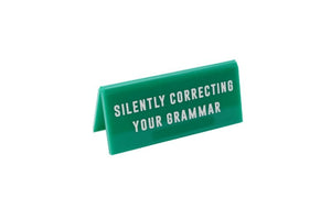 'Silently Correcting Your Grammar' Green Desk Sign