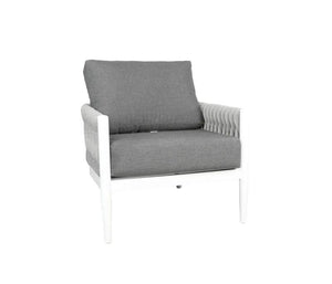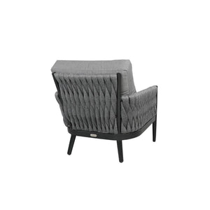This visually captivating line is constructed from powder coated cast aluminum with woven Sol Rope, resulting in unique and eye-catching outdoor pieces. Includes Sunbrella® cushions that come in your choice of fabric. The Sunbrella® Cushions are overstuffed for comfort and support, and are designed to withstand sun damage, mold, mildew and stains.