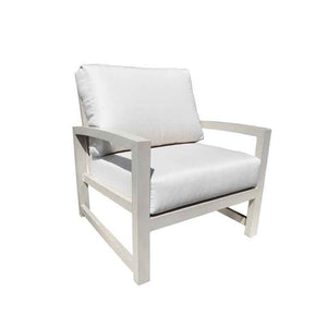 The Venice Outdoor Deep Seating Chair makes it easy to expand your outdoor living or entertaining space, with its slightly elevated backrest and customizable deep seating cushions. Featuring open framed armrests and a slat back, is cushions are Canadian made and available in a variety of Sunbrella® colours and patterns. The Sunbrella® fabric is designed to withstand mold, mildew, stains and sun damage.
